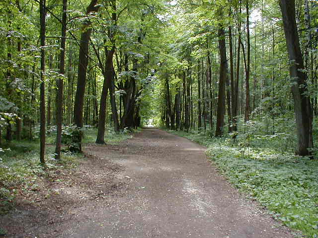аллей обширного пейзажного парка. Зеленые насаждения в последнем