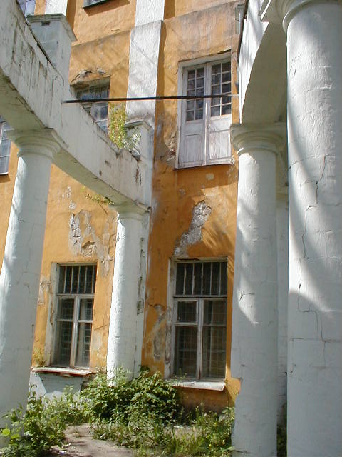 дома помещались отделанный каннелированнымн колоннами двусветный