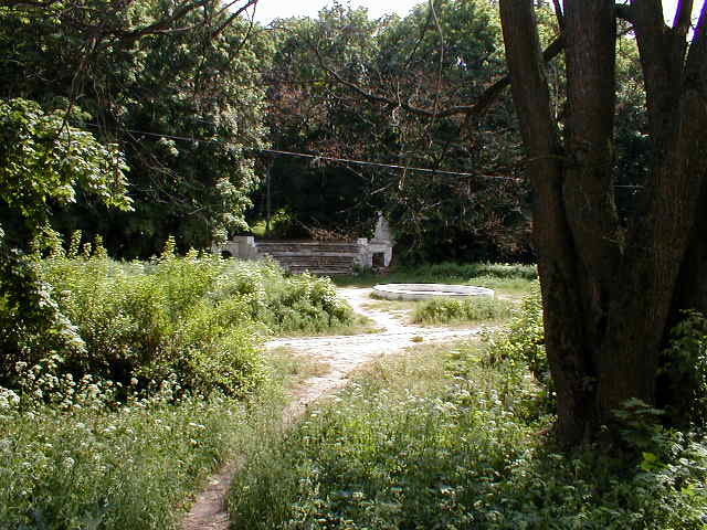 парапеты украшены круглой скульптурой. Уцелел насыпной холм