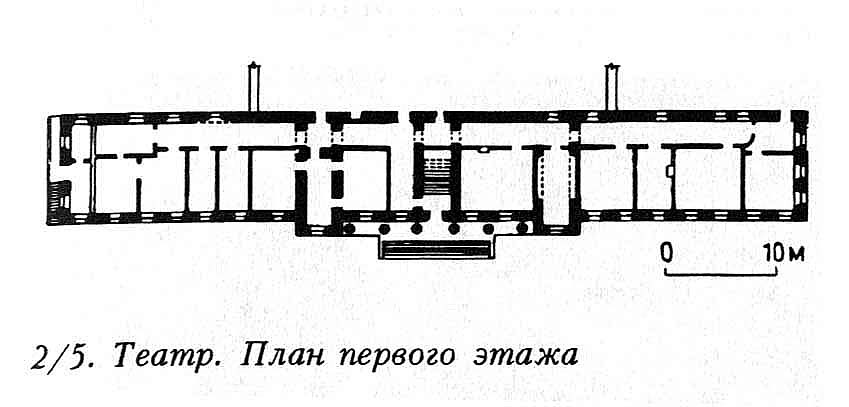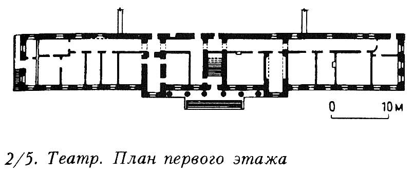лишенную закрытого парадного двора. Строгая симметрия центрального